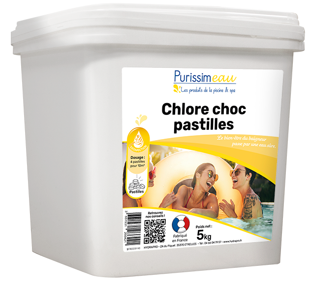 Le chlore choc en pastilles de 20 grammes, est très facile à doser par simple comptage des pastilles.